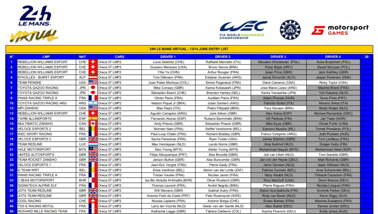 Now, we have the confirmation of all the participants of the virtual test of Le Mans that will take place from June 13 to 14 in rFactor 2. It will have the usual LMP1, LMP2 and GTE classes as iRacing but with some different models. All the teams have at least 50% real drivers in their ranks and the names involved are enough to take the test into account: