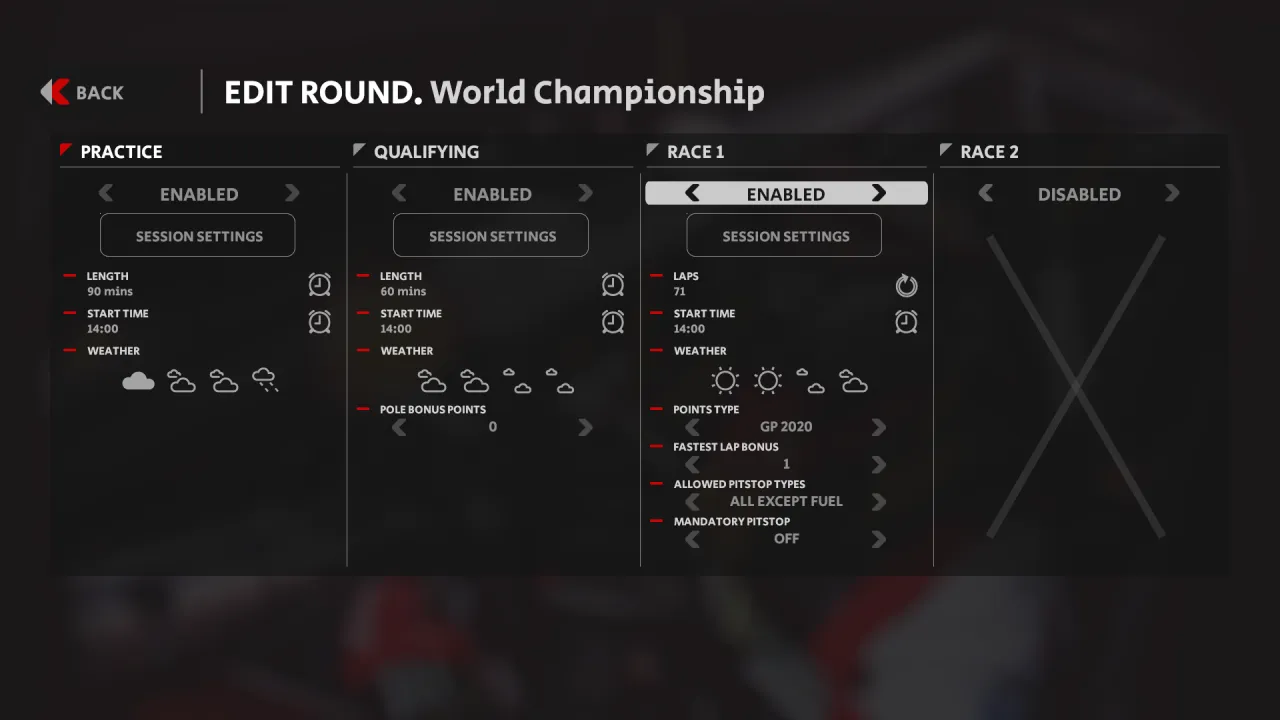 We´ll expand more on the above in next dev update, but here´s a small WIP preview of the configuration screen where users will be able to configure their championship rounds: