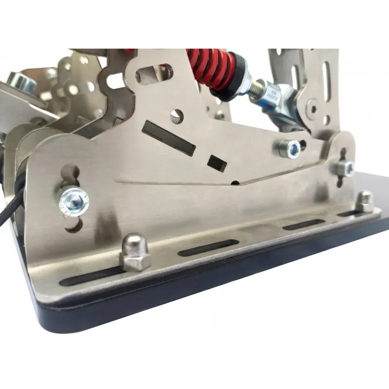 All pedal boards of the BJ Steel family are equipped with Leo Bodnar’s 16-bit electronics which offers 65,000 steps of resolution. Depending on the configuration, more than 50,000 steps are used on the brake and more than 20,000 steps on the throttle and clutch.