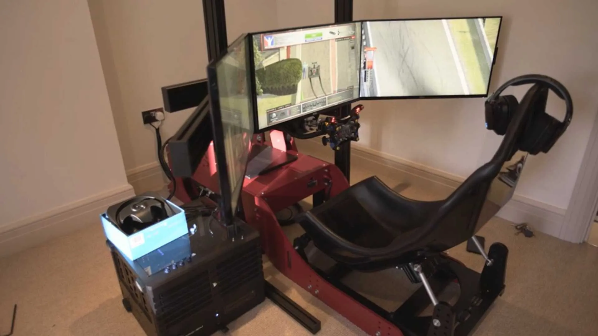 As far as we know, he only has one simulator installed. It’s the Formula Simulator Model from CoolPerformance and they have a triple 27-inch screen set up that matches very well with the type of simulators he uses, such as iRacing or rFactor 2.