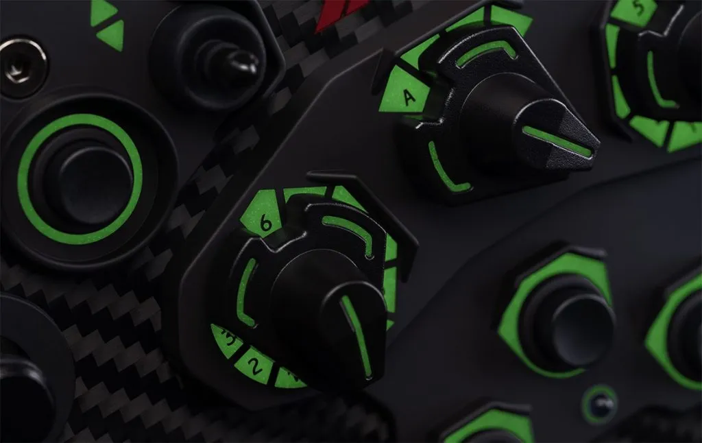 - Two analogue paddles using high-precision, contactless Hall sensors (Clutch bite-point mode, clutch/handbrake mode, brake/throttle mode, mappable analogue axis mode)