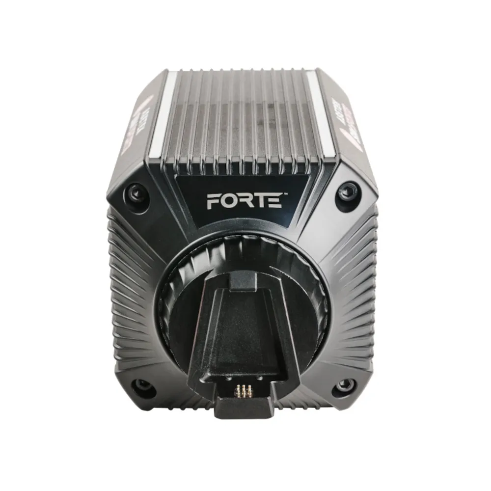 We bought and implemented IP from market-leading vendors, teamed up with Mige, a well-known motor supplier to sim racing, and after thousands of man-hours of developing from the ground up the electronics, software, firmware, mechanics, cooperation, design, test, and validation, we are now ready! Please meet the Forte® 18Nm Direct Drive Wheelbase!