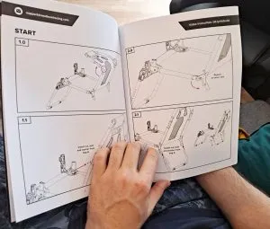 Both the instructions and the video clearly explain all the assembly steps, so I will not describe them one by one. However, I will tell you some details about the process. First of all, there is a screwdriver in the box to tighten all the screws, which is nothing more than an Allen key with a screwdriver tip carved into one of the ends. It was a bit uncomfortable for me, so I used a regular screwdriver instead. On the other hand, the alignment of the tubes in my model was not ideal. In the images below you can see how the holes in the upper part of the seat were misaligned, and the difference that there was in the alignment of the tubes of the rear legs when mounting my model. With a bit of patience in the first case, and applying some force in the second (if you have an assistant, as in my case, it will be much easier), you can align the tubes to insert the screws.