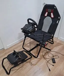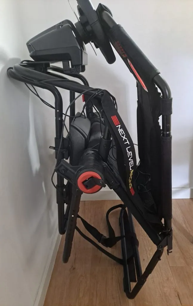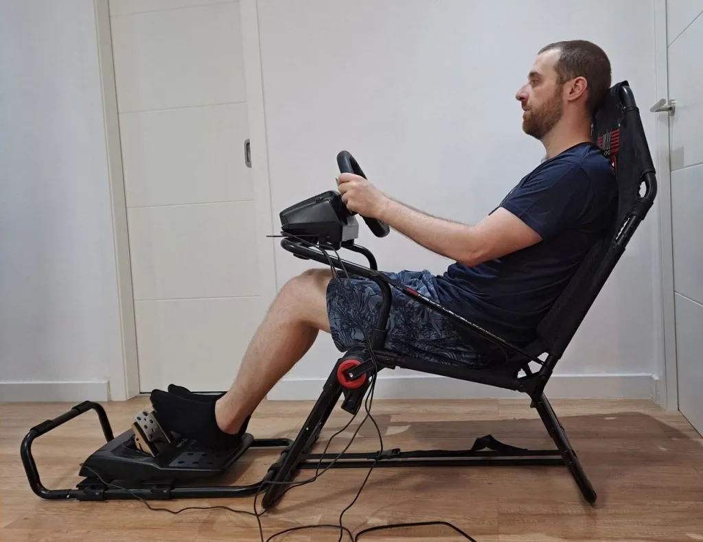 To finish this review, we must talk about an advantage that this cockpit presents with respect to the steel / aluminum models: mobility. The chassis can be folded in a few seconds thanks to the roller that joins the seat with the front legs (again, the operation seems complicated the first time it is done, but it is learned quickly), without having to modify any of the driving position adjustment features. This can be very interesting for all those with little space at home, and who cannot keep a space in the house exclusively for simracing. Yes, you could tell me “hey, but then there we go again mounting and dismounting stuff…”. Just a relevant difference: now the assembly and disassembly is a single operation, and after that, no additional adjustment is needed. The chair will be at your optimal height, the steering wheel will be centered and at the correct distance, the pedals also with their correct position. I think this already represents a significant leap forward in comfort in the simracing experience, even though we have to keep folding and unfolding our “office”. And if you have a place to permanently establish your cockpit, and you have no intention of buying high-end hardware, this GT Lite represents an interesting economic alternative to aluminum chassis. As I said before, I opened this cockpit for testing with a bit of skepticism, but it has greatly surprised me in all respects, always taking into account the price range in which this product is found.