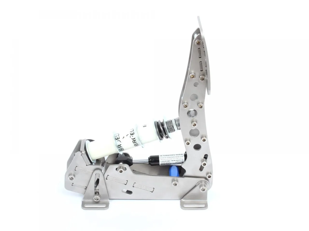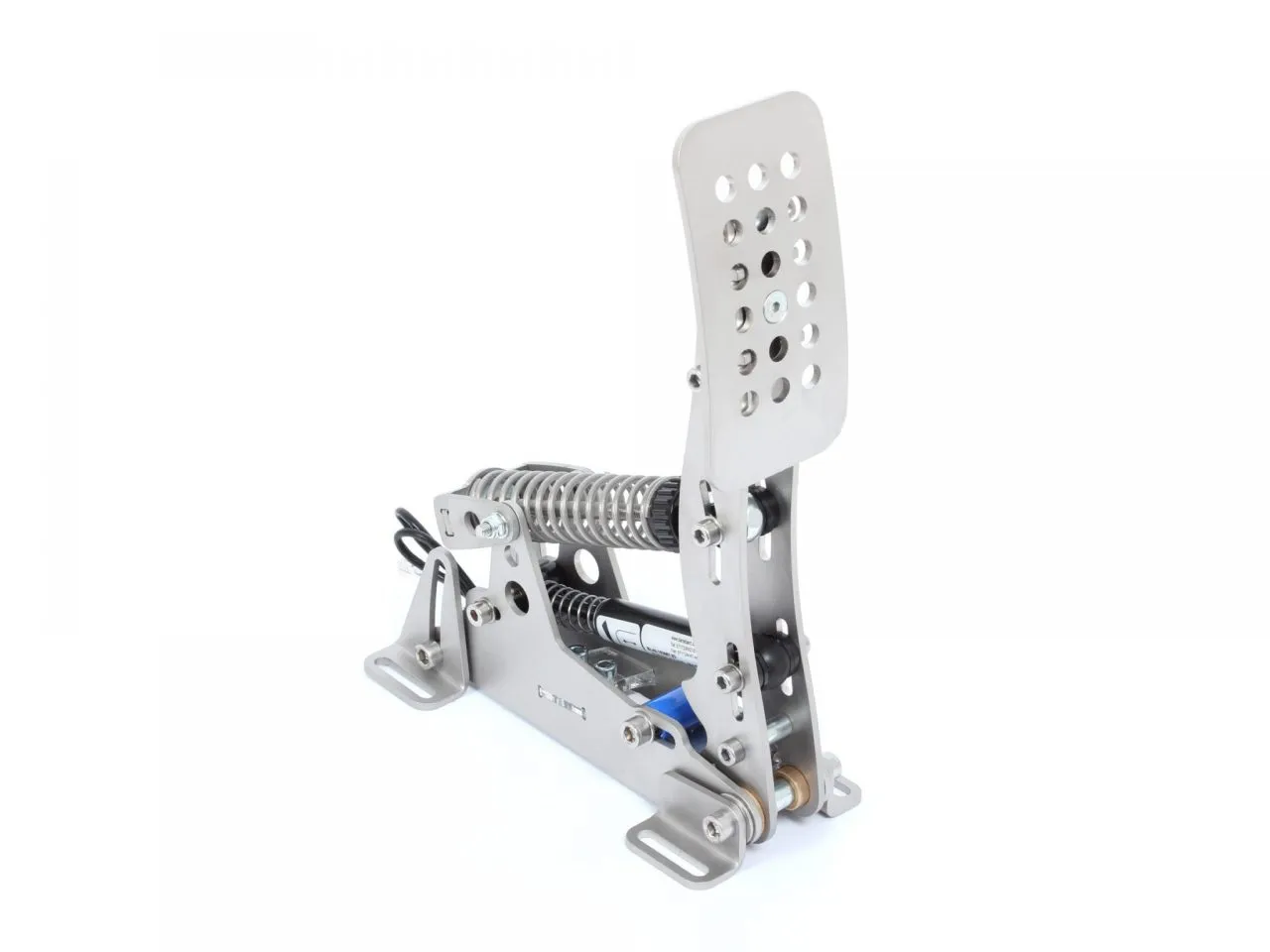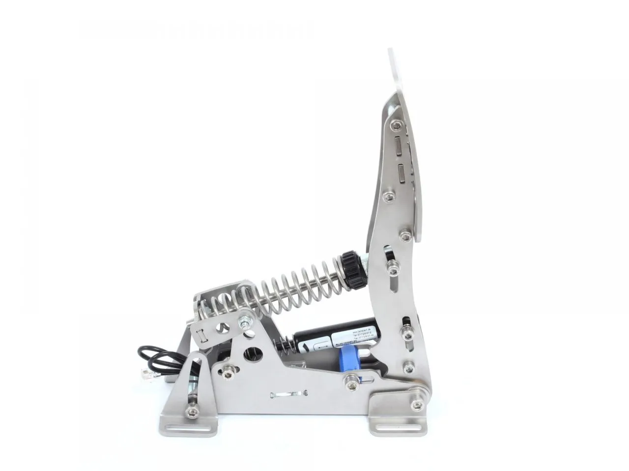 - The dual stage brake system consists of an initial coil spring, simulating the pad to disc gap and progressive rubber springs. The pedal firmness is adjusted by selecting from 10 different rubber stack heights. With 136kg or 300lbs max force, this pedal easily requires 36x more effort than regular consumer grade brake pedals. Braking using muscle memory improves accuracy and consistency.