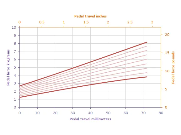 - Smooth, accurate and greatly adjustable, the throttle pedal gives you excellent control with exactly the travel, pre-load and spring stiffness you prefer. The charts on this page show the various travel and resistance curves for each pedal. The values are measured at the ball of the foot where force is applied.