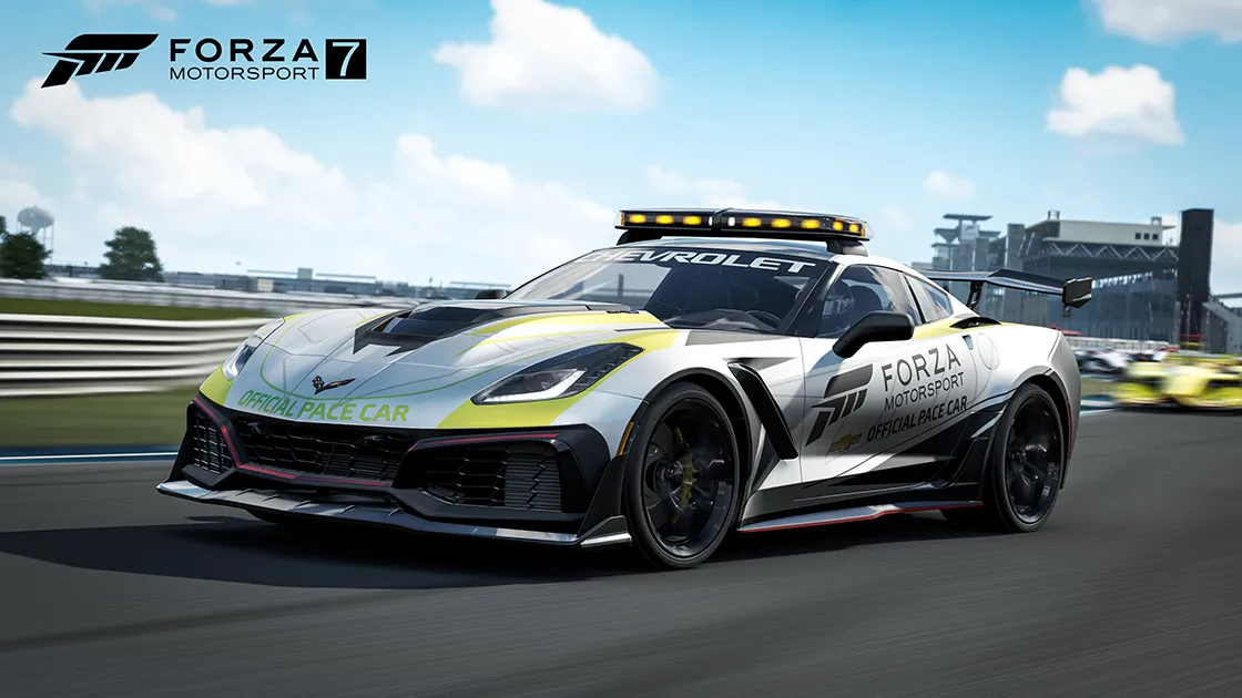 The Corvette ZR1 is presented as the safety car with 650 horsepower ready to lead the drivers.