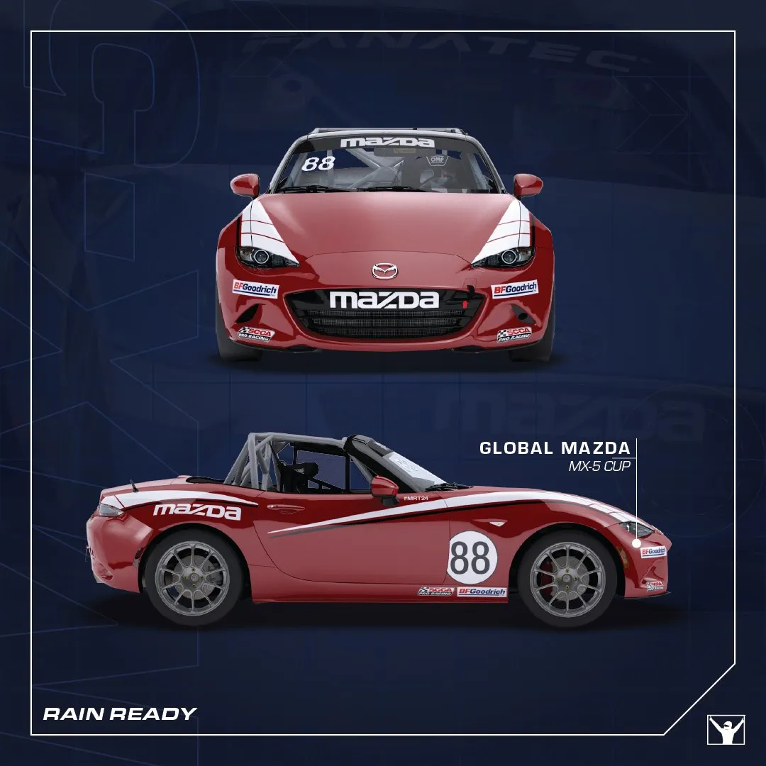 - Rain Perfomance: The Mazda MX-5 with wet tyres is now available in the Advanced Mazda Class C.