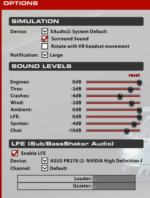 XAudio has killed my iRacing expirience. All of the sounds now only come through the sub, or the center channel. Absolutely nothing through the front and rear R/H or L/H speakers. Some upgrade.
