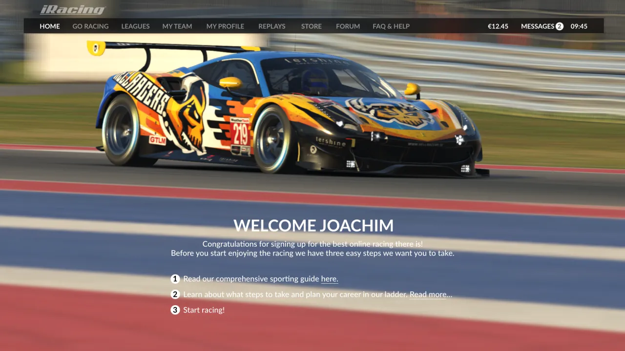 Welcome screen for newcomers. Something to guide them on how iRacing works, etc. Only shown the first time after you sign up.