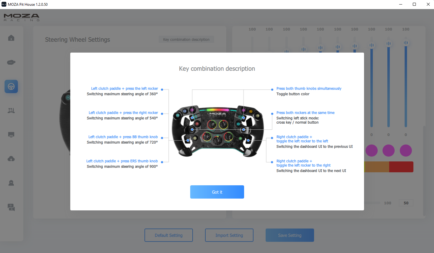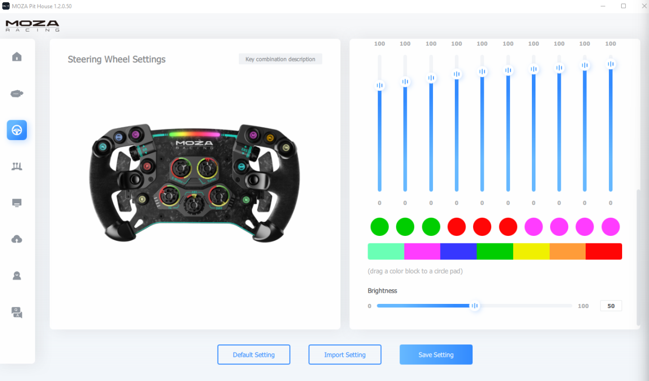Both the steering wheel and the base on which you are using it need Moza Pit House for its correct functioning, so once we have already seen in the previous analysis the functioning of the software for the base, we will briefly see the few options provided by the rim. Few for its configuration for use with the base, of course, as you will have to spend some time configuring the wheel in each of the simulators you are going to use if you want to make use of all the rotaries and buttons.