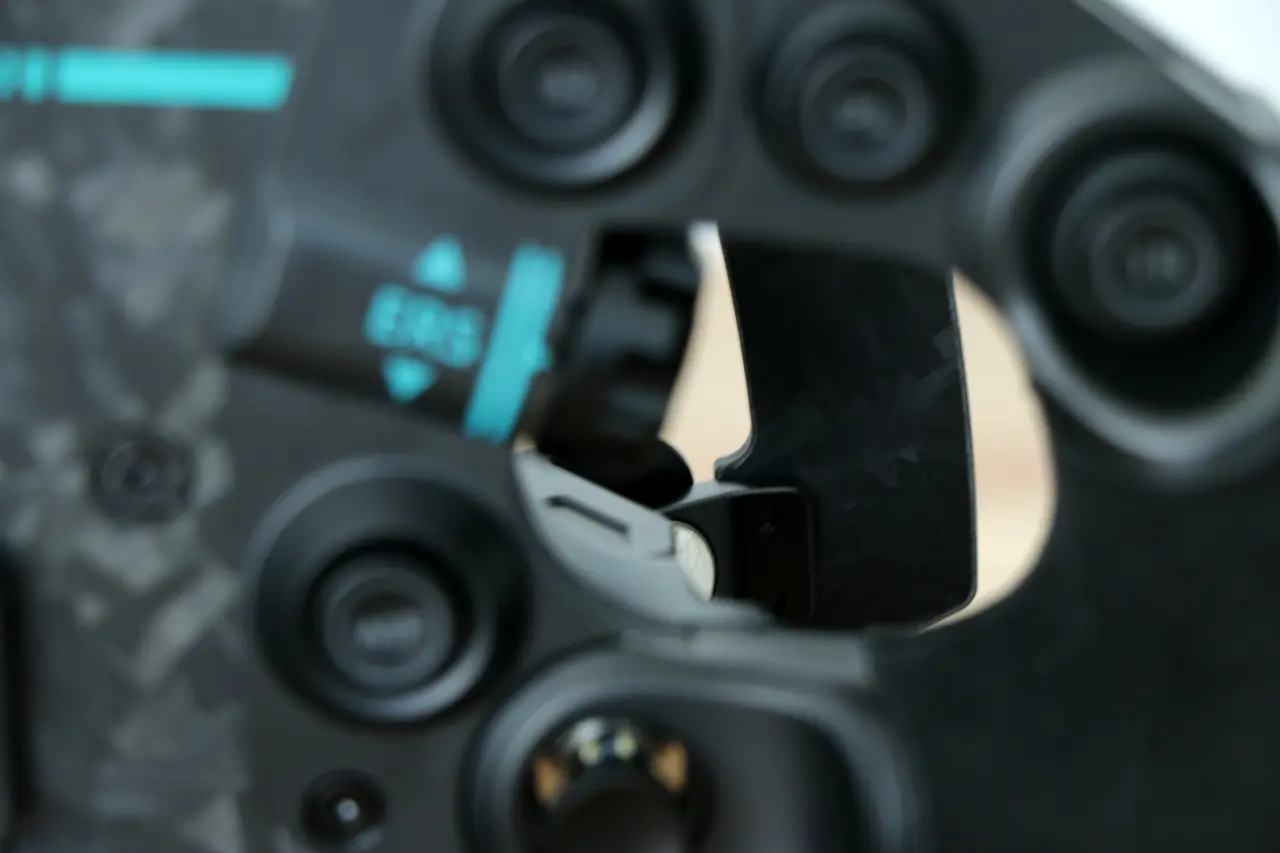 The alcantara grip is very pleasant to the touch, you can tell that the material is of high quality, and it is shaped in a way that allows you to hold the wheel in a good position. After many hours with the wheel using all kinds of vehicles, we have no complaints about the position of the buttons or the grip itself, the hands are in a very natural position.