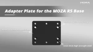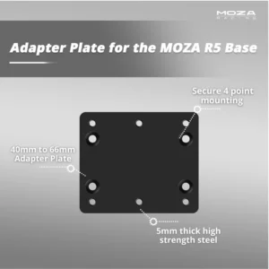 The R5 adapter plate quickly and easily converts the 40mm R5 mounting bolt pattern to a more standard 60mm, thus ensuring excellent compatibility and easier drill-free mounting solutions. CNC machined using high-strength steel, ensuring zero loss in force feedback strength and detail.