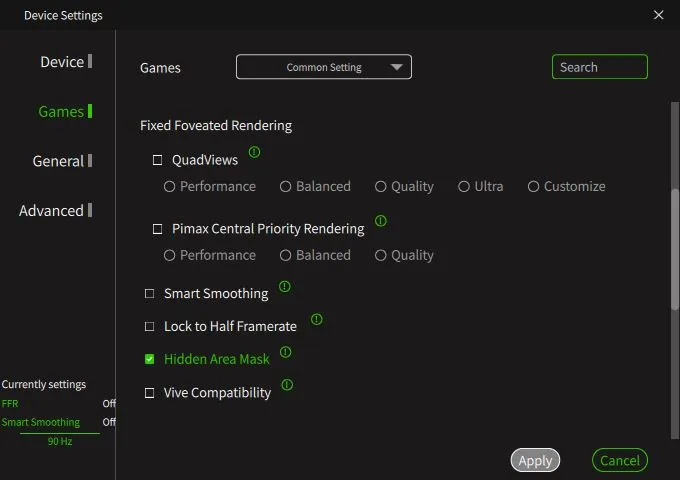- 90Hz in Pimax Play (72Hz if you are struggling)