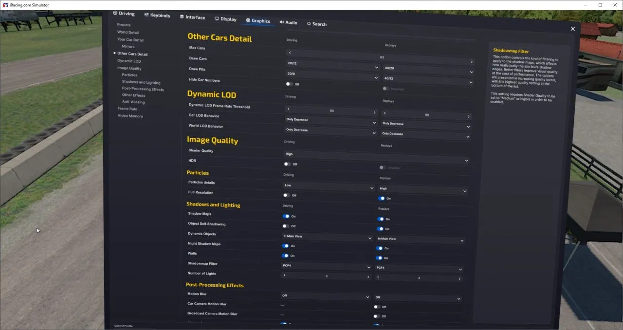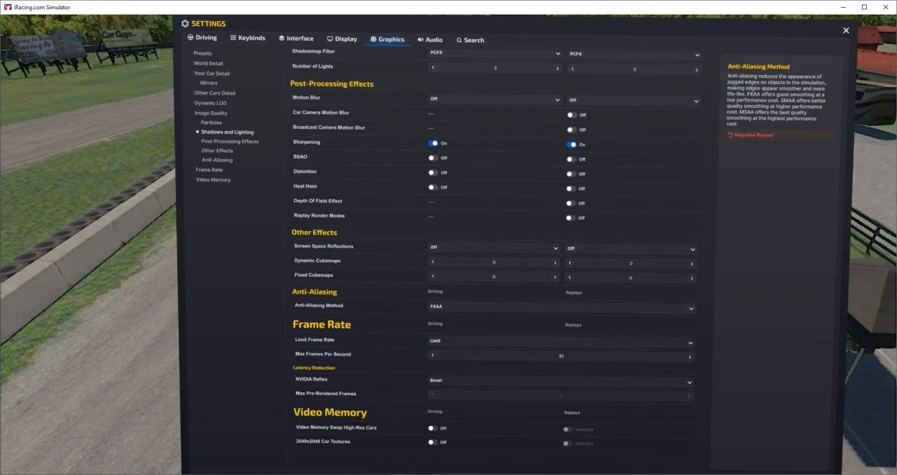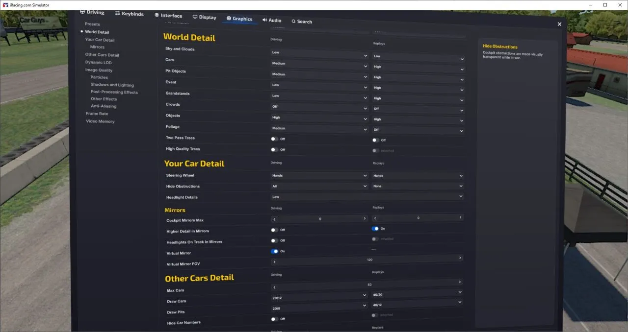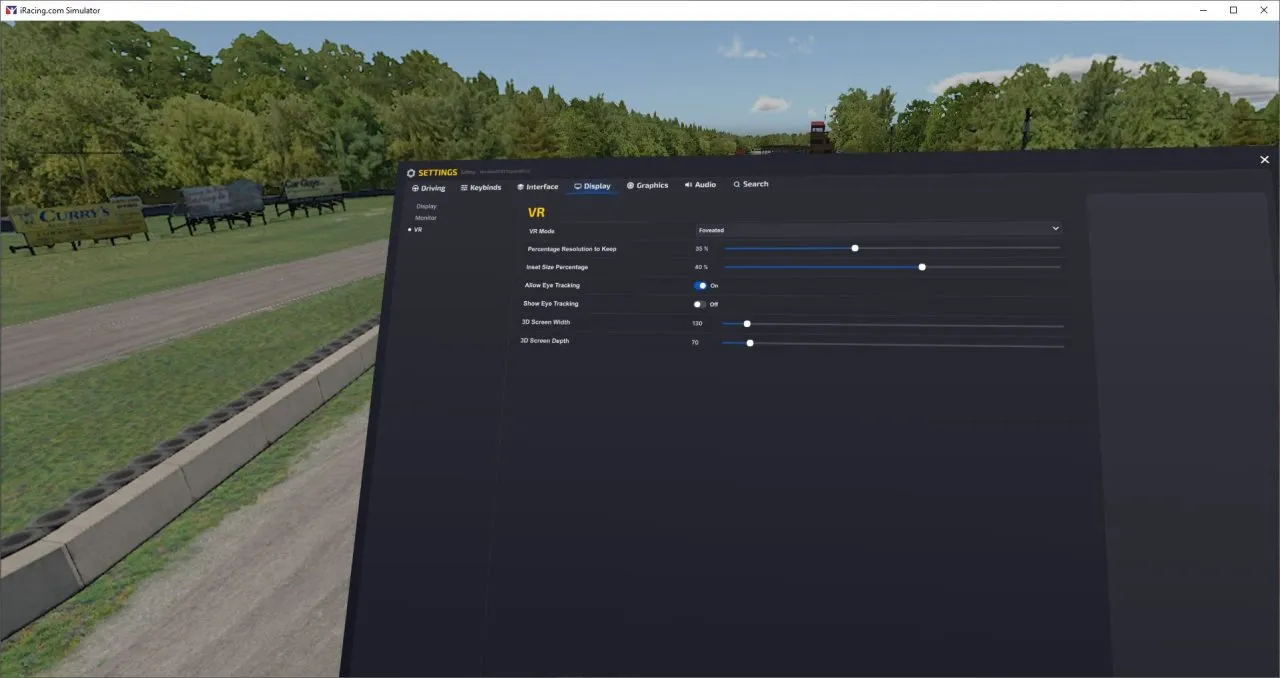 - Foveated rendering enabled in iRacing