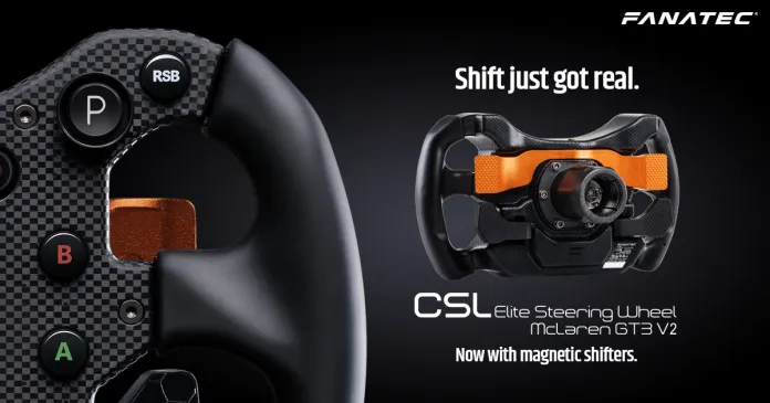The McLaren GT3 wheel was one of Fanatec’s most famous sim racing wheels. Today, Fanatec has released a new version with new features. The CSL Elite Steering Wheel McLaren GT3 V2 is a refinement of the original, with redesigned electronics for improved performance and durability. The fourth rotary encoder of the real GT3 wheel is replaced by a white, 1” OLED display.