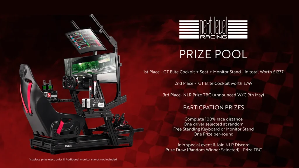 Starting Tuesday 17th May drivers can register to the Next Level Racing Special event on SGP and join the NLR Discord now. You can then register for a heat on Simracing.GP.