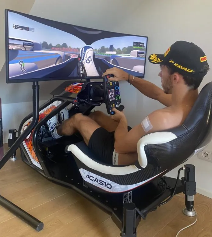 Pierre has hydraulic pedals from SimTag, a custom cockpit from RaceSeat and a Simucube 2 Pro. Also, and this is where he differs from some of his peers, he has 2DOF actuators that allow him to be much more immersive. The wheel is a GPX from Precision Sim Engineering that he handles with AlpineStars gloves from the same brand as his boots. He completes it with the usual tools for streaming if needed. A PC completes the set to move everything with the necessary fluidity.