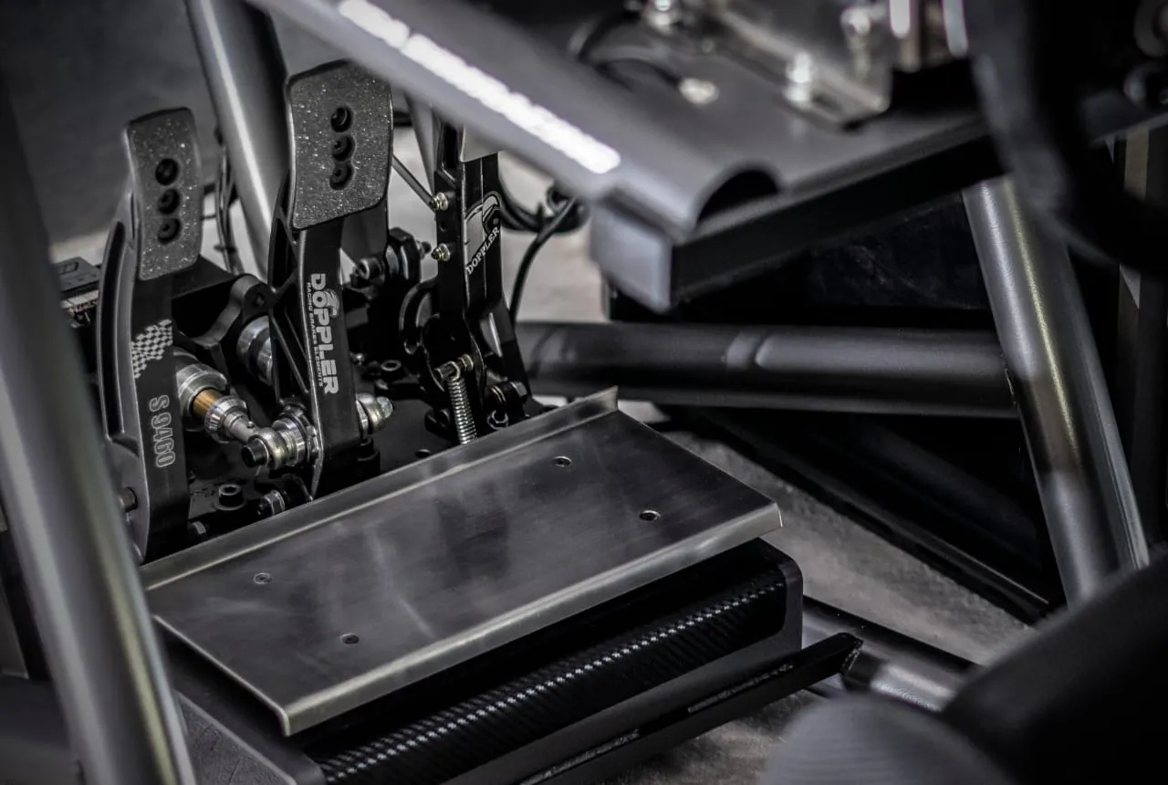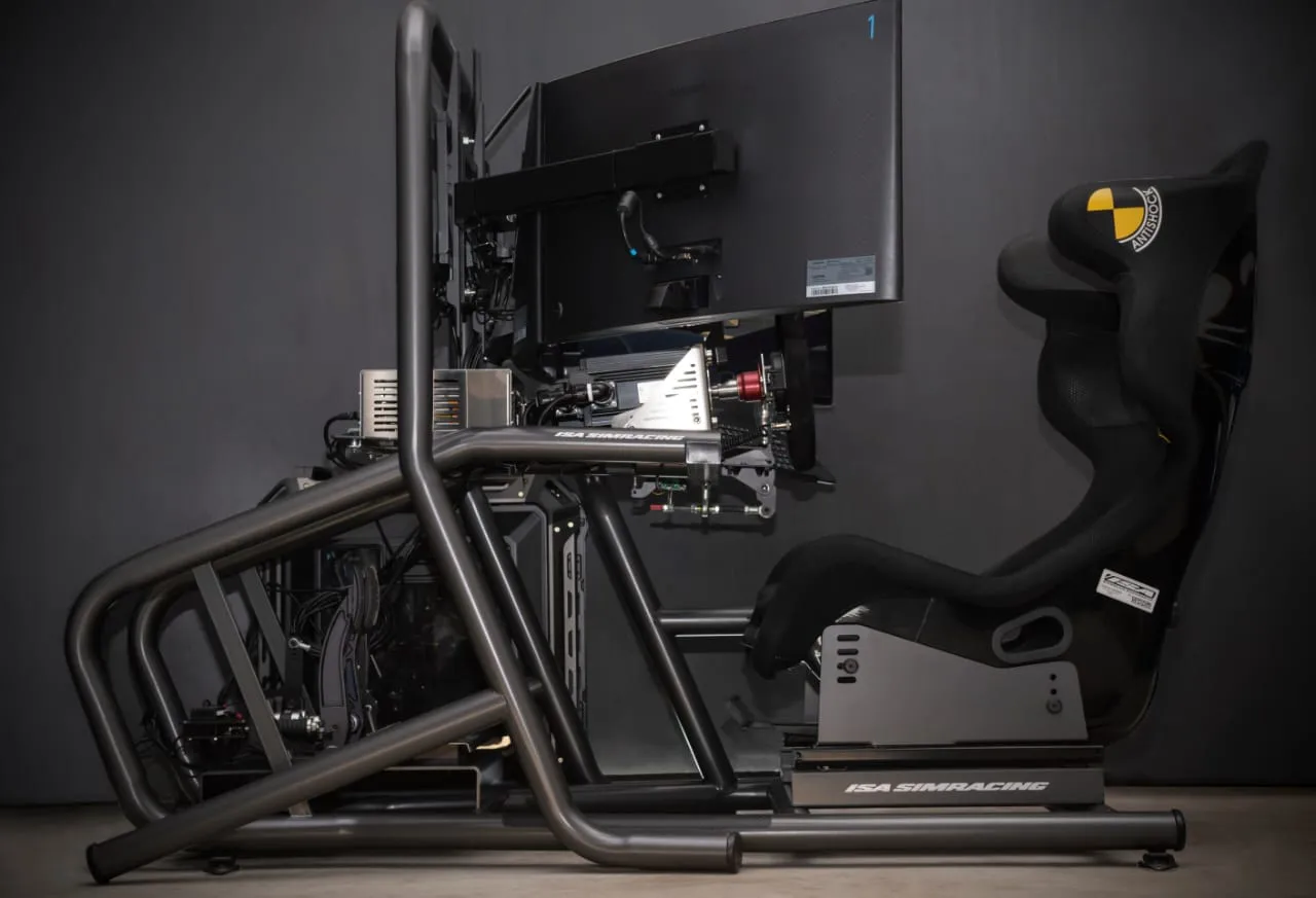 The cockpit is made with aluminum profiles to support the forces exerted by the Direct Drive steering wheel. We do not guess the seat, but we assume a bucket to complete the set as it is the usual solution.