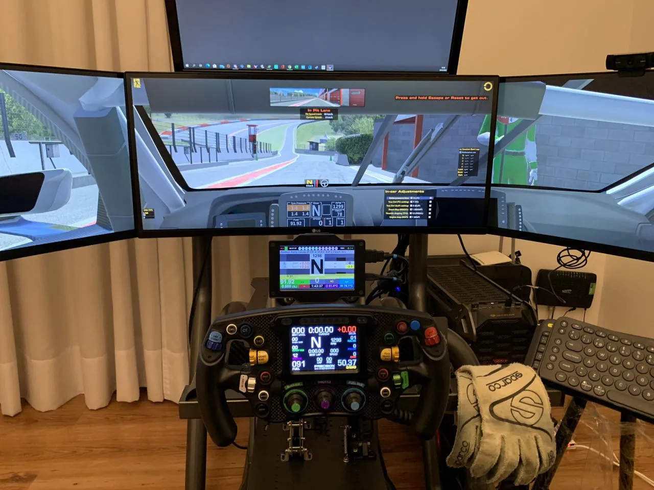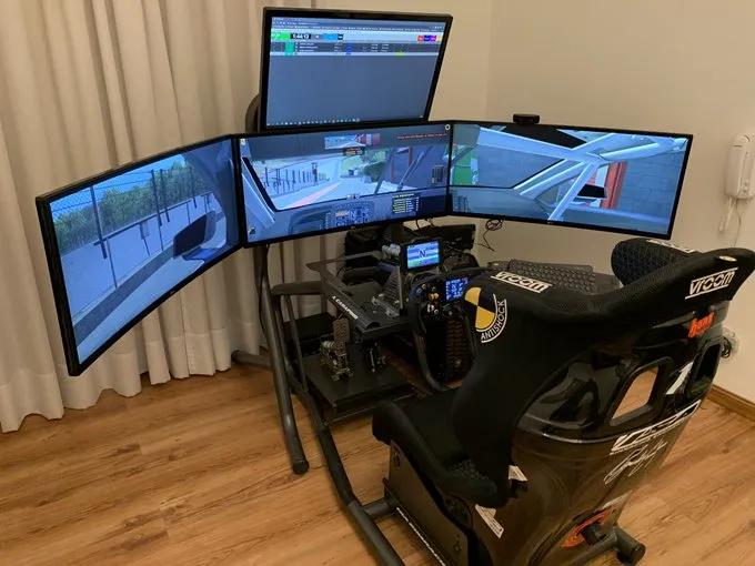 He has two simulators installed. Both cockpits are the CoolPerformance Formula Simulator with a triple screen configuration of 27 inches that fits very well with the type of simulators that Lando uses, such as iRacing or rFactor 2 supported by a fourth screen (and fifth for interactions in Twitch) to control the time and information relating to other competitors.