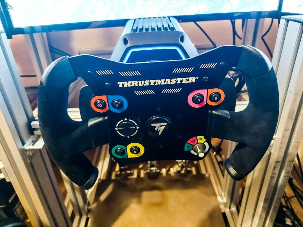 But after a while, it’s an added bonus, and Thrustmaster explains that this RGB light ring will interact directly with the game, offering useful information. For example, it can serve as an LED rev indicator, and when there is a yellow flag on the track, the lights will turn yellow. In this way, Thrustmaster adds a useful feature that goes beyond aesthetics. With the rim, the light ring seems to be somewhat hidden, so it doesn’t draw as much attention to itself.
