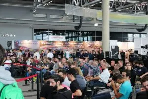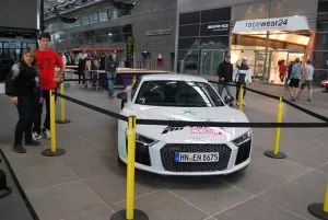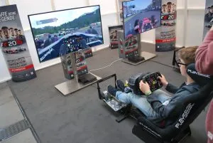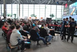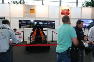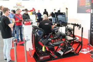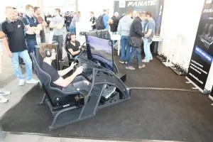We are back to tell you everything about what we could see at the expo. For anyone who doesn’t know Nürburgring track, it is a huge complex with many different places and activities spread over thousand of square meters. Expo was only occupying hundreds of meters under the main BMW tribune. A clear space with ton of natural light and ideal spot to accommodate this kind of events. There were many of the main European simracing companies and a few from overseas. Also great absences like Thrustmaster leaving Fanatec as the only commercial base wheel developer company at the expo.