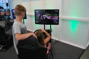 A rough list of the companies present there: Benq, Fanatec, Rseat, iRacing, HE Engineering, Vesaro, JCL, Microsoft, Evotek, Codemasters, RFactor2 and some other local and neighboring countries.