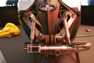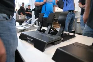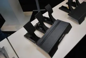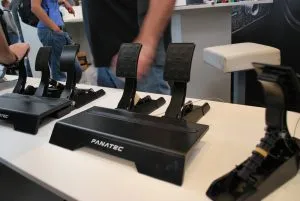 Few new developments to show at the expo. Fanatec showed new CSL line of products, CSL Wheel Base, which we already tested here, and new CSL pedals with a very good finishing and materials. Brake pedal is totally customizable, travel and strength, and it should be working for anyone who wish to upgrade from a lower hardware set. My feeling about these, they are similar to V3 CSP pedals, but with only some minutes to test them, it is very hard to say. Thomas also told me they are studying Direct Drive wheels to using this technology in their new developments, but at the moment, the priorities are with preorders of these new CSL products. Shipping will take place at the first week of November.