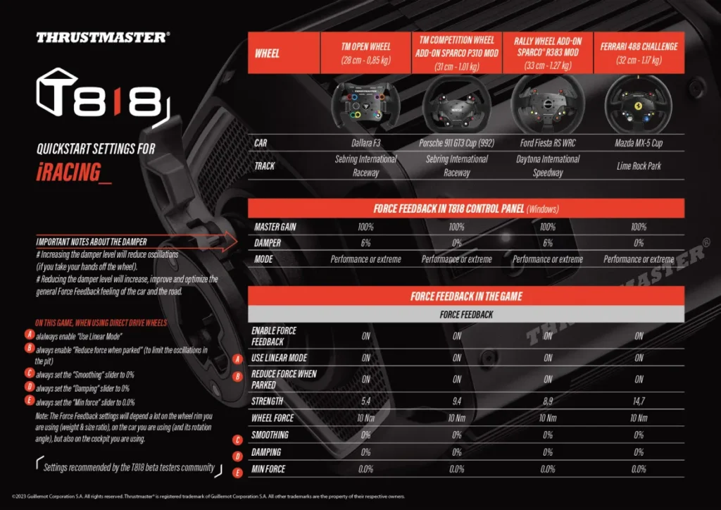 While we are finishing the analysis of the most powerful Thrustmaster base, what we can tell you are the recommended configurations that we are using in some of the most popular titles of the simracing scene.