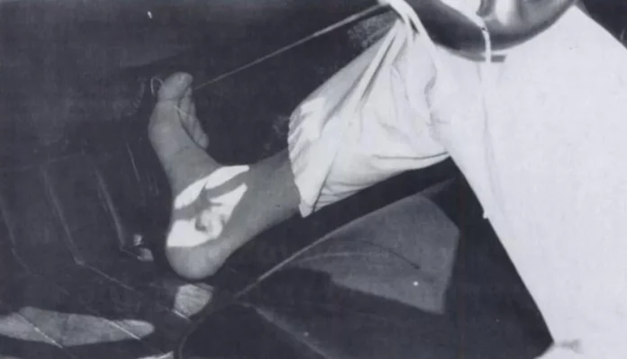 If you turn the wheel that string will pull your foot off the pedal and if you push your foot down on the pedal it will in turn straighten the steering wheel.